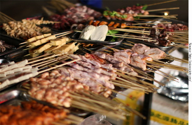 Step outside after dark in a Chinese city, and you’ll smell the mouthwatering scent of street-side barbecue stands cooking up juicy 肉串儿 (ròu chuàn (r))