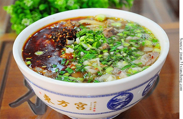 or beef noodles, is deliciously fragrant and decidedly hearty. The beef is braised in ginger, cloves, and star anise, and served thinly sliced on top of the noodles. The dish is usually served with homemade chili oil, and garnished with chopped scallions and cilantro.