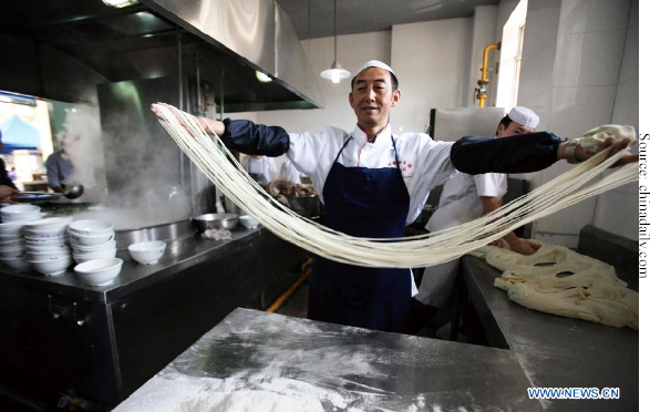 Two of the most famous noodle dishes in Lanzhou are 拉面 (lā miàn)