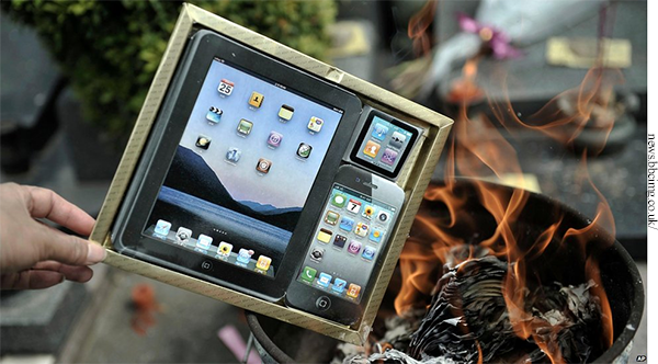 In recent years, paper crafts in the shapes luxury goods have been developed as modern Qing Ming Festival offerings. You can now expect to find everything from paper apartments, paper Hummers, and even paper iPhones! The ancestors will certainly be pleased. :)