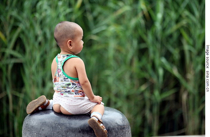 It's not unusual to see babies wearing Chinese split pants (开裆裤, kāi dāng kù)