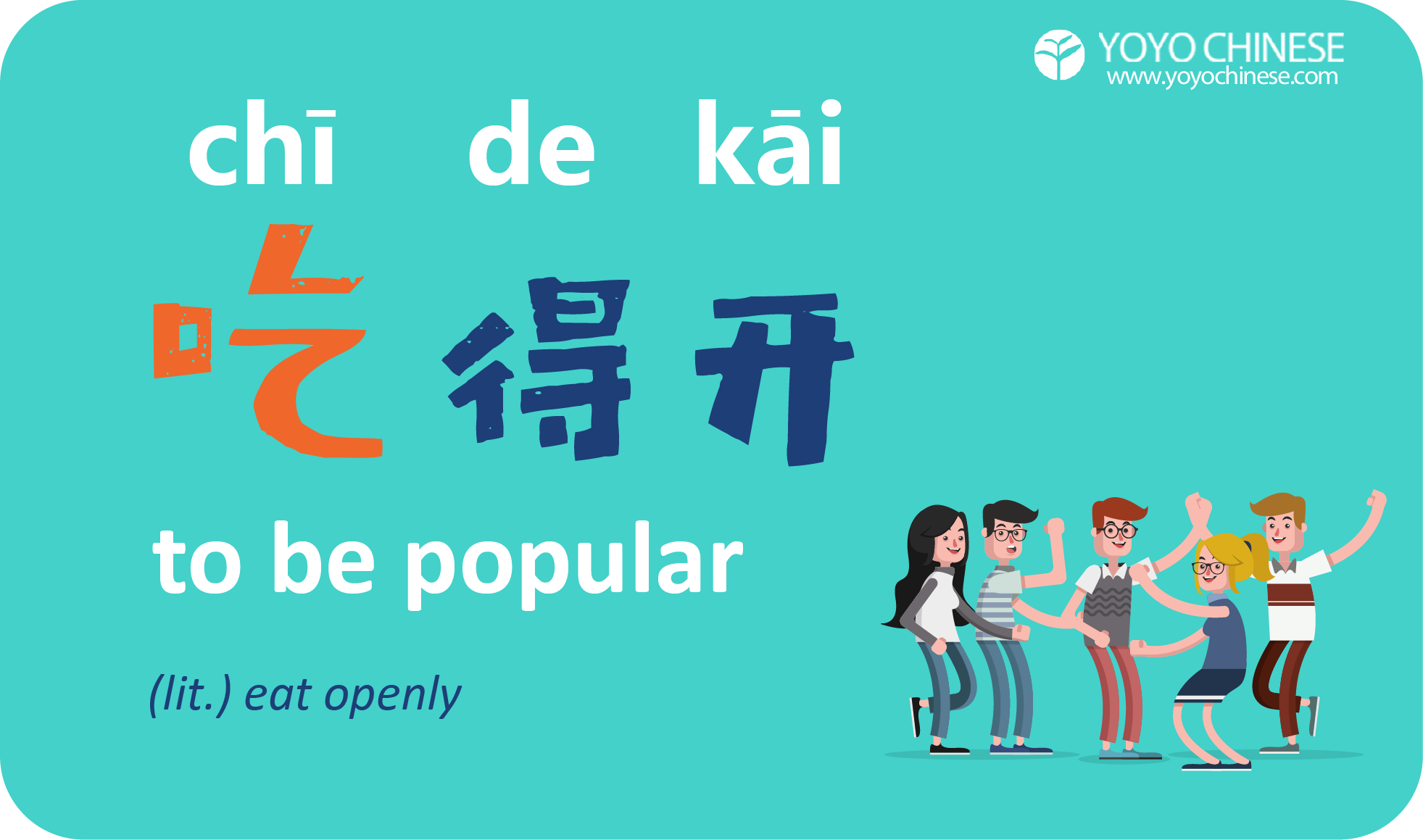 The characters 吃得开 (chī de kāi)