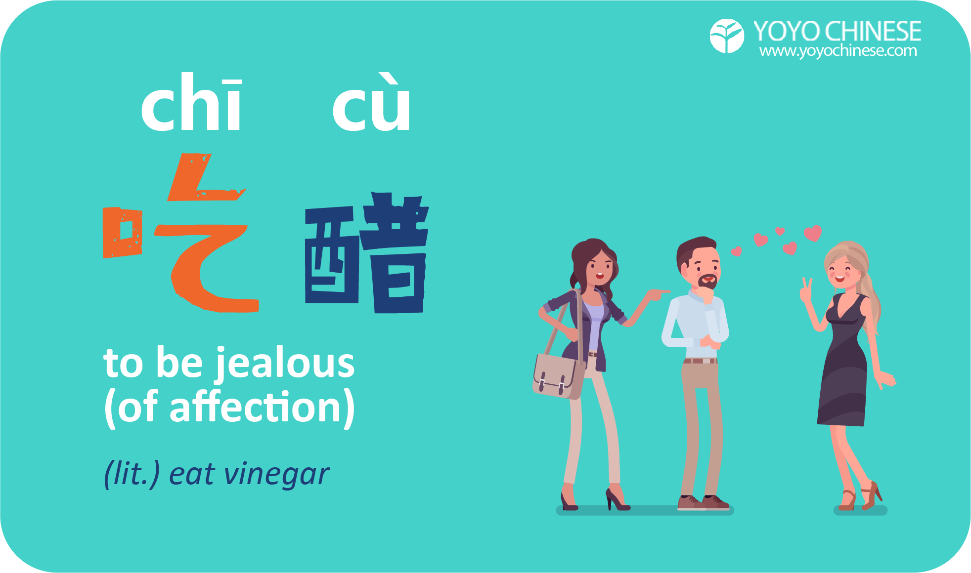 If you heard someone use this and hadn't learned what it meant, you might wonder why this person is "eating vinegar"! But now that you know what it means, isn't it a poetic way to express this kind of romantic jealousy?