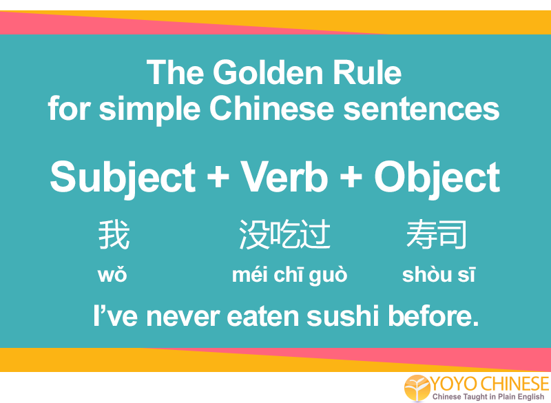 Review the Golden Rule of Chinese for simple and complex sentences: