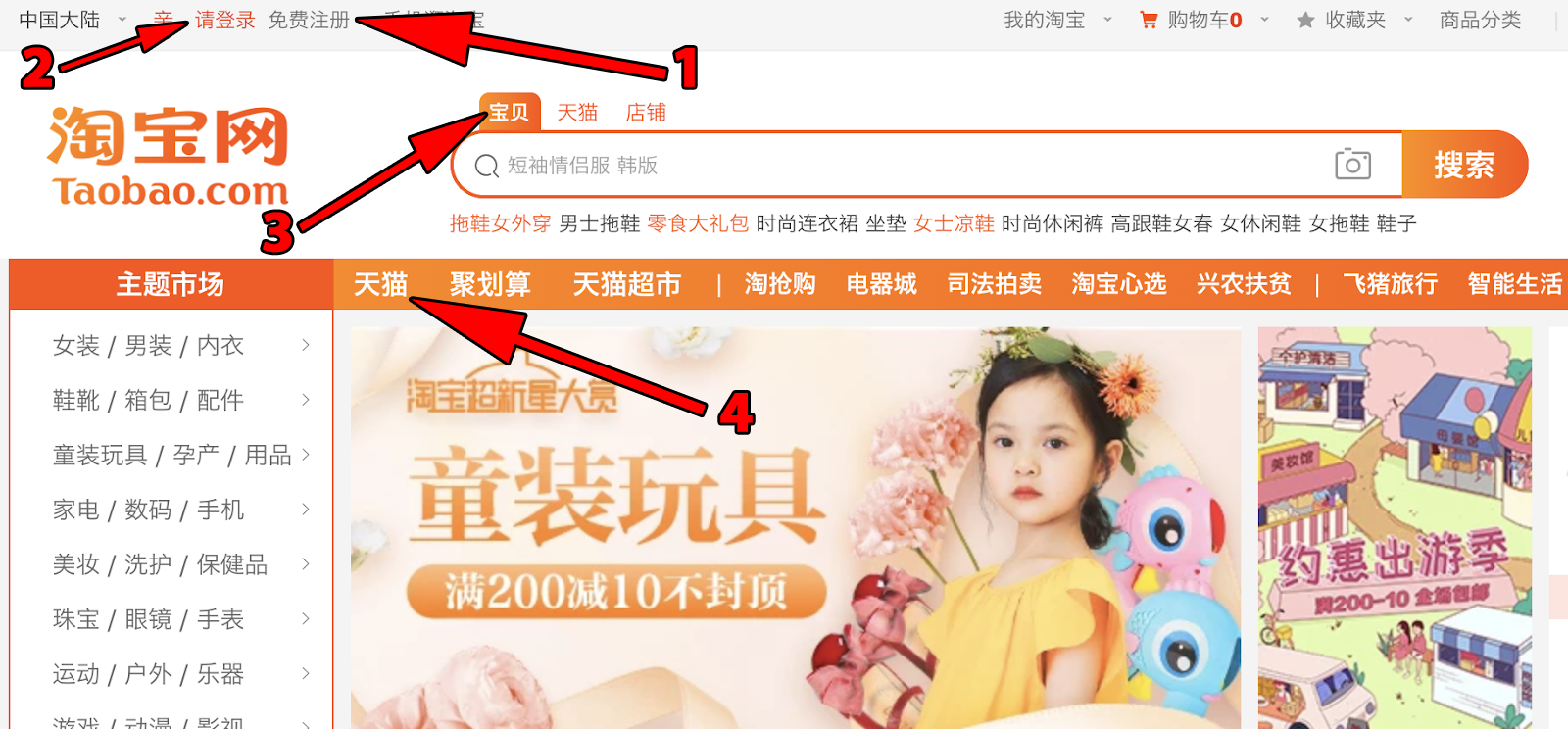 But, the Taobao website also gives access to another platform: 天猫 (tiān māo)