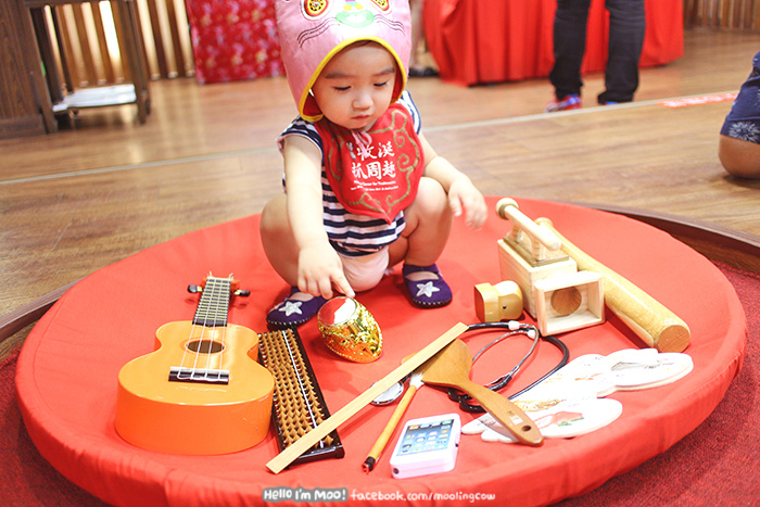 Whichever way it’s done, the 抓周 (zhuā zhōu)