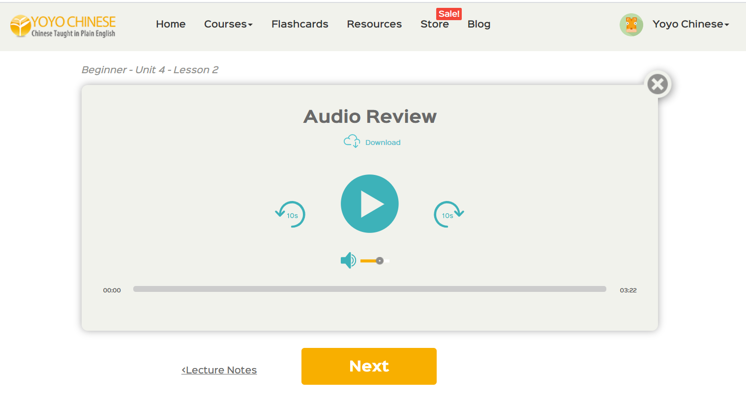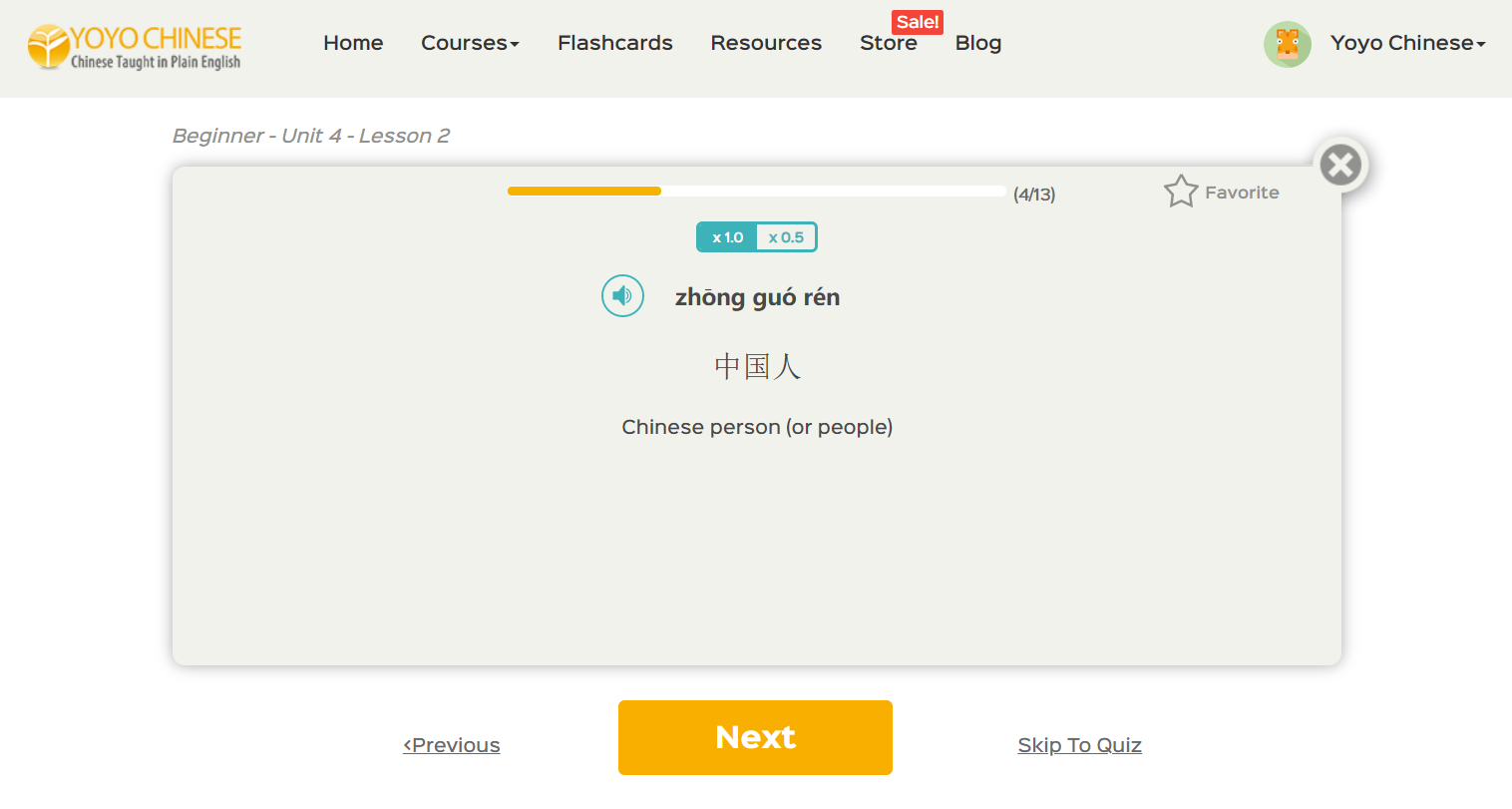 In the Yoyo Chinese curriculum, we do the work for you! This is especially helpful if you’re not confident in your pronunciation of the Chinese pinyin as well. We have a great feature, called the Audio Review, which is basically an MP3 file where we’re quizzing the student on the lesson material covered.