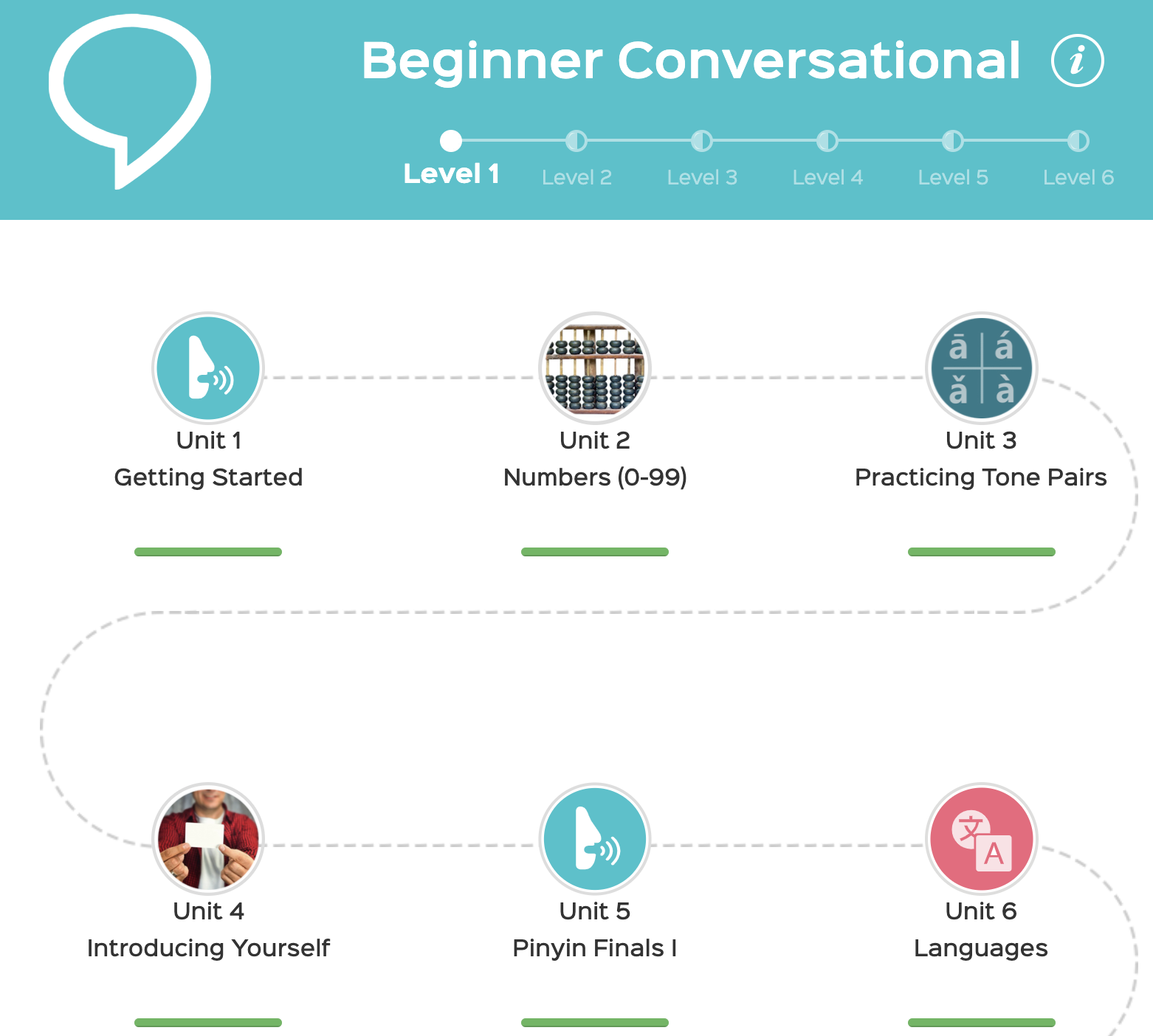 - Beginner Conversational Course (at least finish 50% of this course before starting Chinese Character Course I)