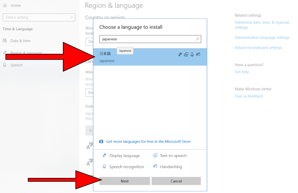 5. Search for "Japanese". First click on “Japanese”, then click “next” below: