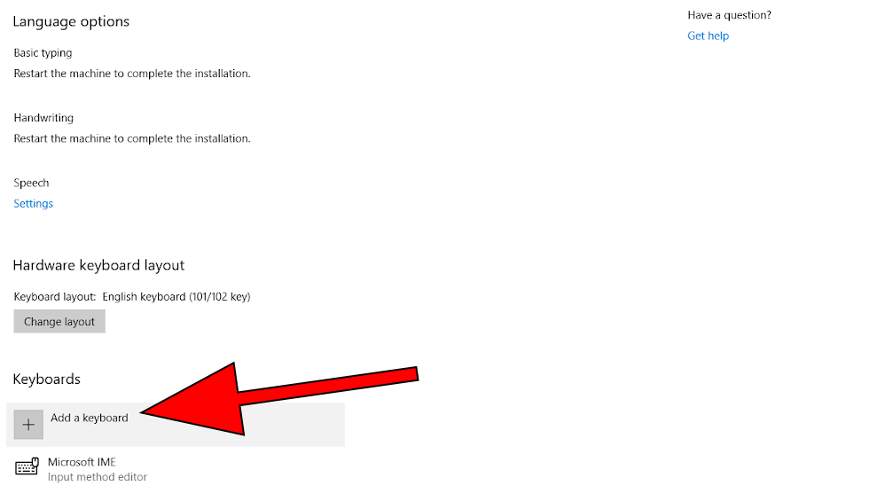 8. In the "Language options" menu for the Japanese Language you just insalled, click “Add a keyboard”: