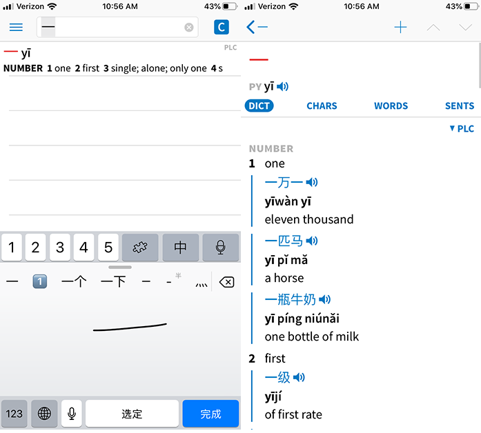 *Pro Tip: When using the handwriting feature, try not to pause for too long in the middle of writing a character. It’s important to be a bit quick to finish writing the full character, since the system may automatically select the closest character(s) to what you’ve written so far, which can be a bit frustrating! It’s better to be a little sloppy, but quick to finish the character, in whatever stroke order you’re able to use!