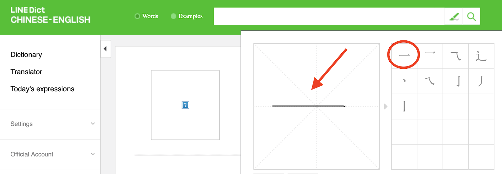 Here, some degree of precision is required, though it doesn’t need to look perfect, and depending on the complexity of the character, you might need to re-write it once or twice to locate the correct character. Once you see the one you’re looking for pop up in the bar above the writing area, feel free to select it, and then once you click, you’ll be able to see the full break down of the word.