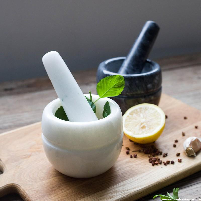 Personally I prefer to use a granite 臼和杵 (jiù hé chǔ)