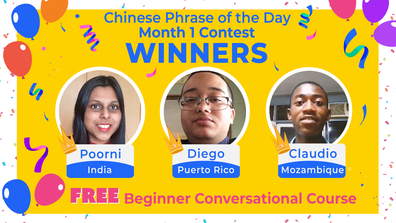 A huge 恭喜 (gōng xǐ) - CONGRATULATIONS! - to the 3 winners of our *Chinese Phrase of the Day Month 1 Contest*! They each received our Beginner Conversational Course for FREE!
