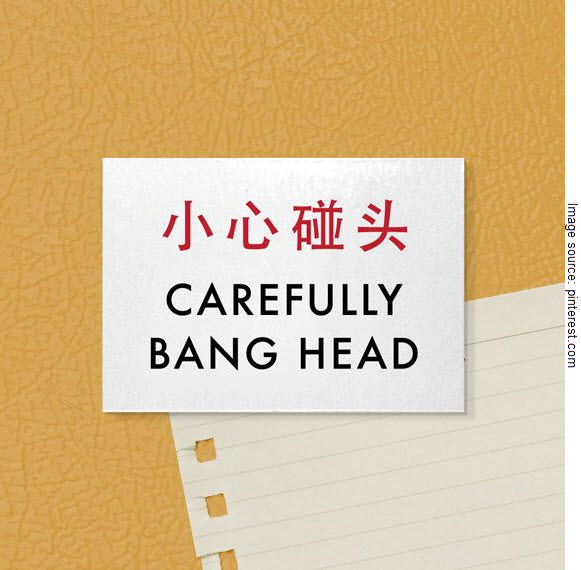 has been mistranslated – others include “carefulness bump head”, “carefully hits to the forehead”, and the more threatening “look out, knockhead”.