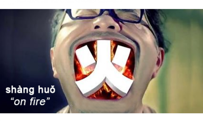 When I learned the characters for this mysterious word, 上火 (shàng huǒ), I only saw the literal meaning: “on fire”, which didn’t make sense.