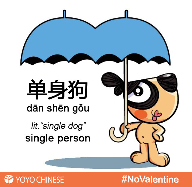 Note: when several friends are all single, they often take pride in the title 单身狗 (dān shēn gǒu).