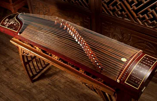 is a plucked musical string instrument dating from the warring states period. The musician presses the strings with the left hand, and plucks the strings with the right hand, usually with picks attached to the tips of the fingers.