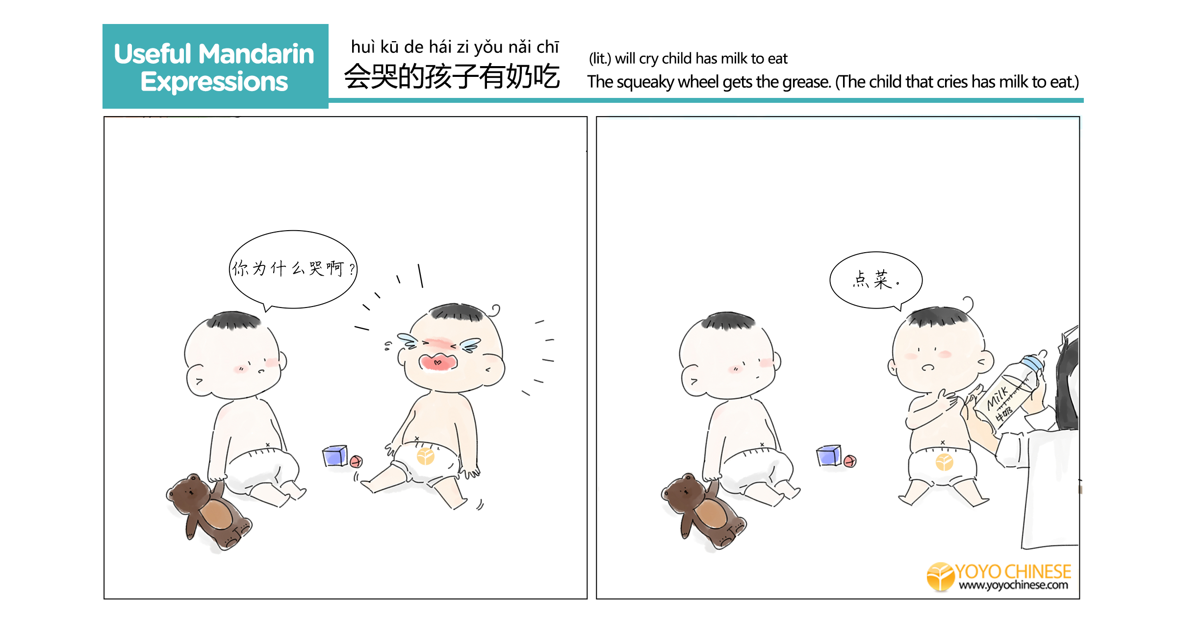 2. "会哭的孩子有奶吃 (huì kū de hái zi yǒu nǎi chī)