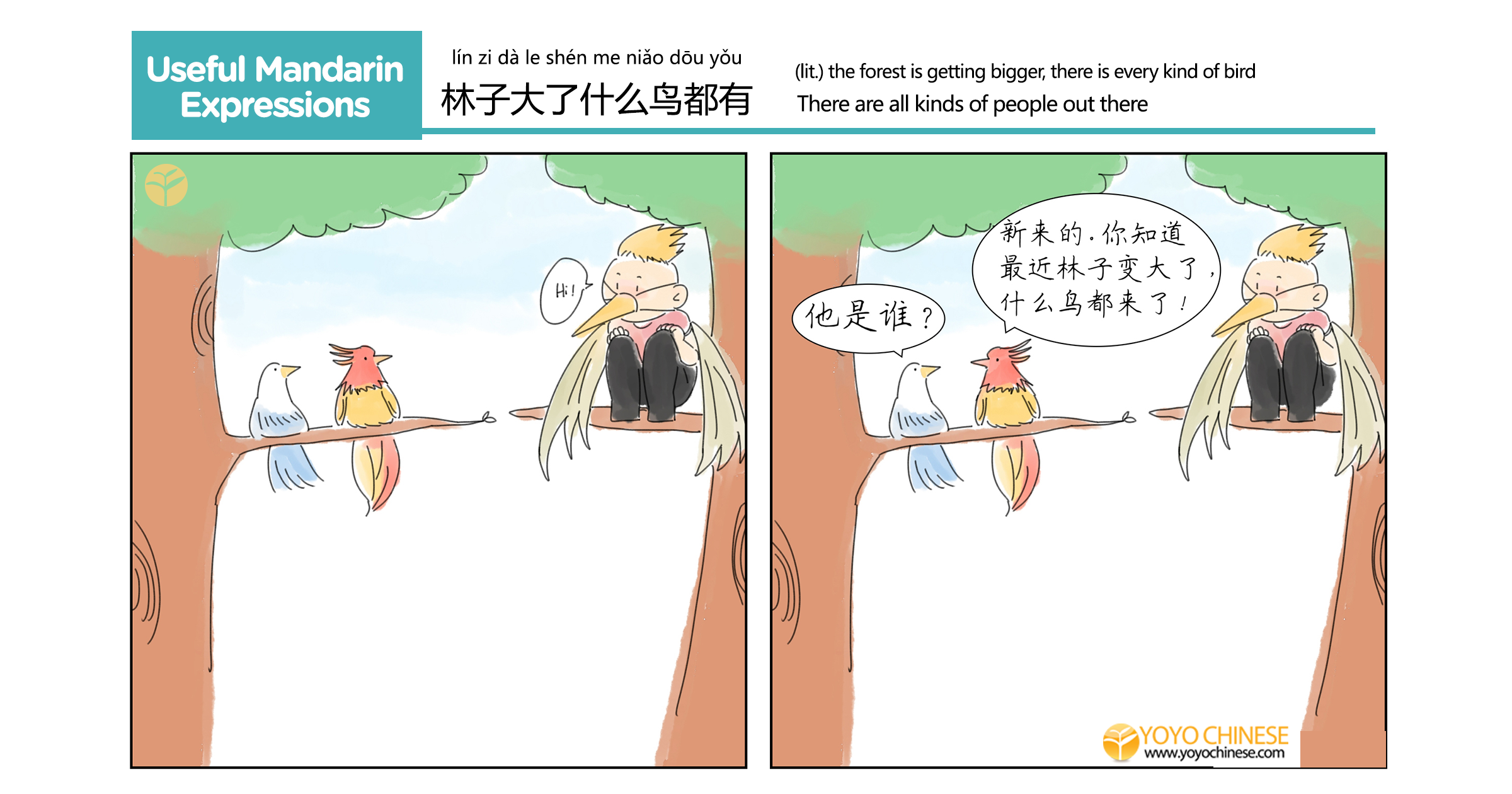 3. "林子大了,什么鸟都有 (lín zi dà le shén me niǎo dōu yǒu)