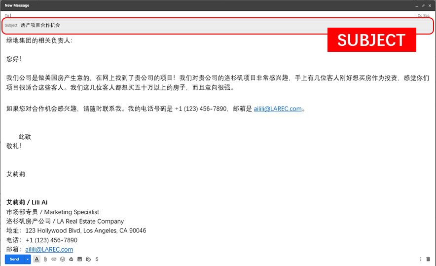 If you are interested in this opportunity to work together, please contact me anytime. My phone number is +1 (123) 456-7890, and my email is ailili@LAREC.com.