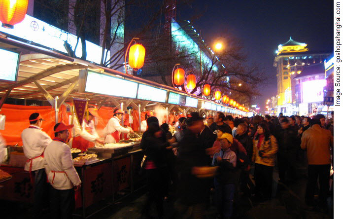 It's here in this little street that you’ll find delicious, authentic Chinese dishes: xiǎo lóng bāo (small, steamed dumplings typical of Shanghai), Nanjing salted duck, fried tofu, traditional Sichuan hot pot, and much more. It's worth a visit just to take in the smells and the atmosphere.