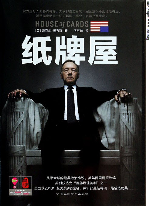 This Netflix drama is a hit Stateside, but in China "zhǐ pái wū (纸牌屋)" has proven unusually popular for a complex drama – generally the shows that play well here are comedies or action drama more broad-appeal in terms of style.