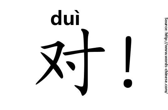 literally translates to “correct,” but in Chinese, it is much more common to use 对 (duì)
