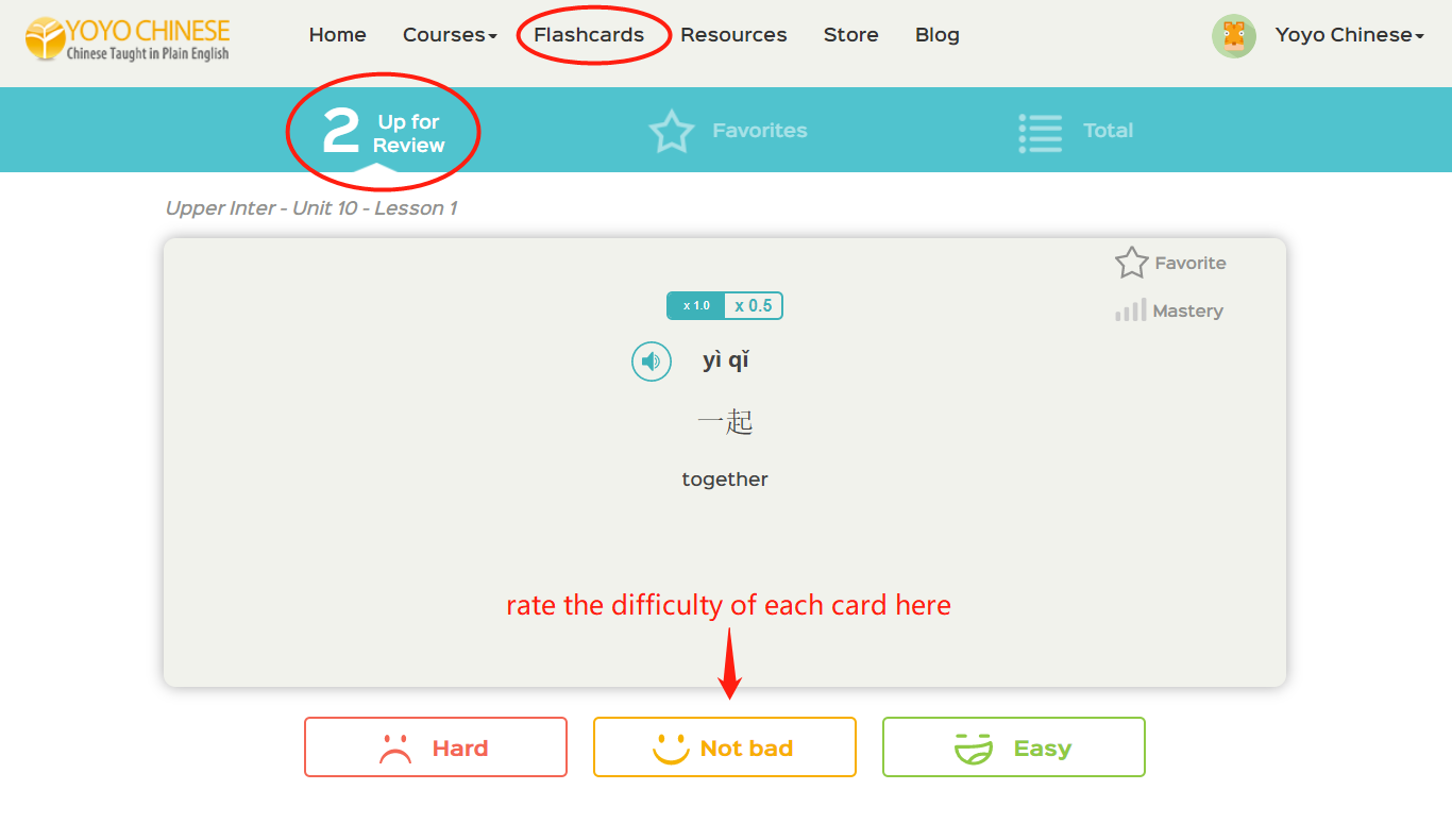 You’re going to LOVE this “Up For Review” flashcard feature! If you’ve started using our flashcards, you will start to have flashcards appear in this deck, which can be found here: