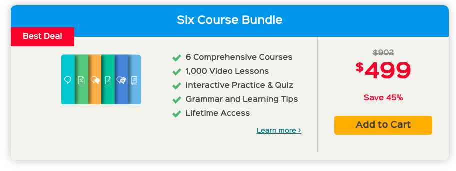 Giving someone our 6 Course Bundle gives them a complete path from zero to Upper Intermediate level fluency and literacy in Chinese - at a huge discount (literally a $400+ savings!).