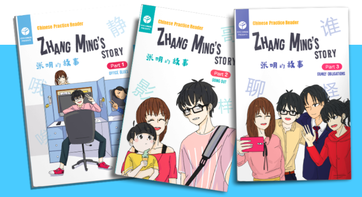 In this 6 part paperback series (available on Amazon), intermediate level students can step into the life of Zhang Ming, a typical Chinese office worker, in this Chinese Character Comic Book Reader series made specifically with intermediate Mandarin language learners in mind. The books use primarily vocabulary drawn from the 600 most common Chinese characters (featured in our Chinese Character Courses), with full translations and detailed academic notes.