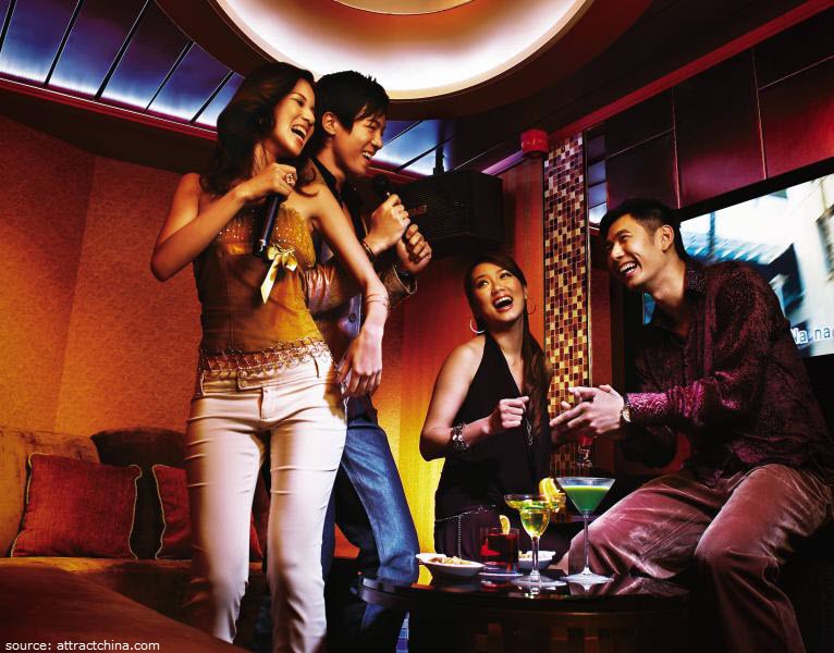 Young professionals might go to bars and clubs. A popular bonding activity to do with coworkers is to go karaoke together, where you can drink as you sing. A popular drink at karaoke bars is Johnny Walker mixed with green tea.