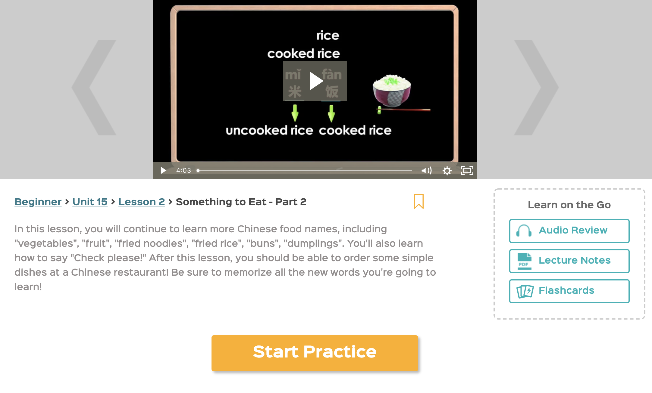 If you want to learn more about how to say different kinds of dumplings, and other common Chinese food staples like beef noodles, rice, steamed buns and more, check out this lesson from our Beginner Conversational Course: