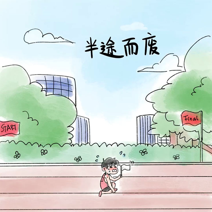 wǒ men dōu pá le yí bàn le bù néng bàn tú ér fèi
