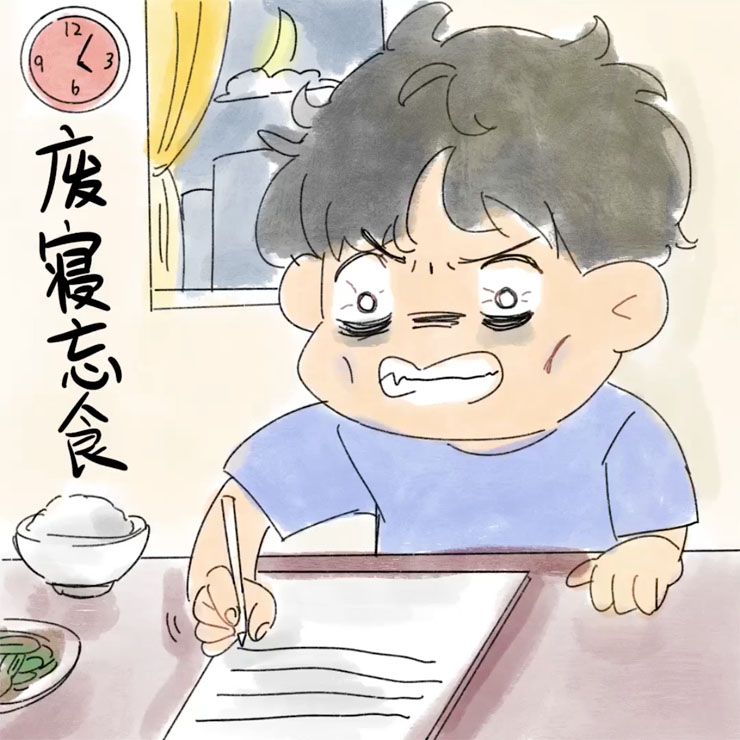 wèi le zhǔn bèi qī mò kǎo shì zhè jǐ tiàn tā fèi qǐn wàng shí de xué xí
