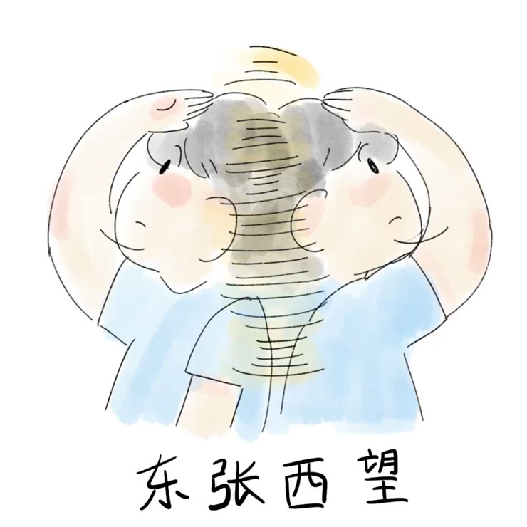 has two main uses. It can be used to describe someone who is distracted and looking around aimlessly, or when describing someone who is standing still, looking left and right. Note that 东张西望 (dōng zhāng xī wàng)