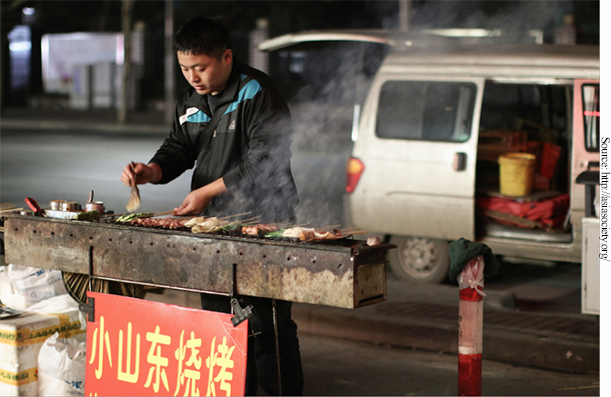 Step outside after dark in a Chinese city, and you’ll smell the mouthwatering scent of street-side barbecue stands cooking up juicy 肉串儿 (ròu chuàn (r))