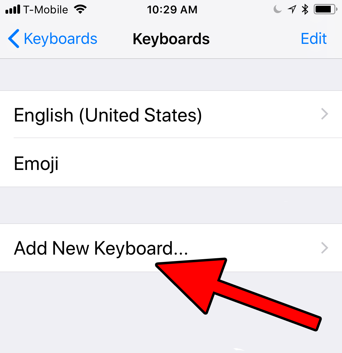STEP 3. On the "Keyboards" menu screen, click "Add New Keyboard":