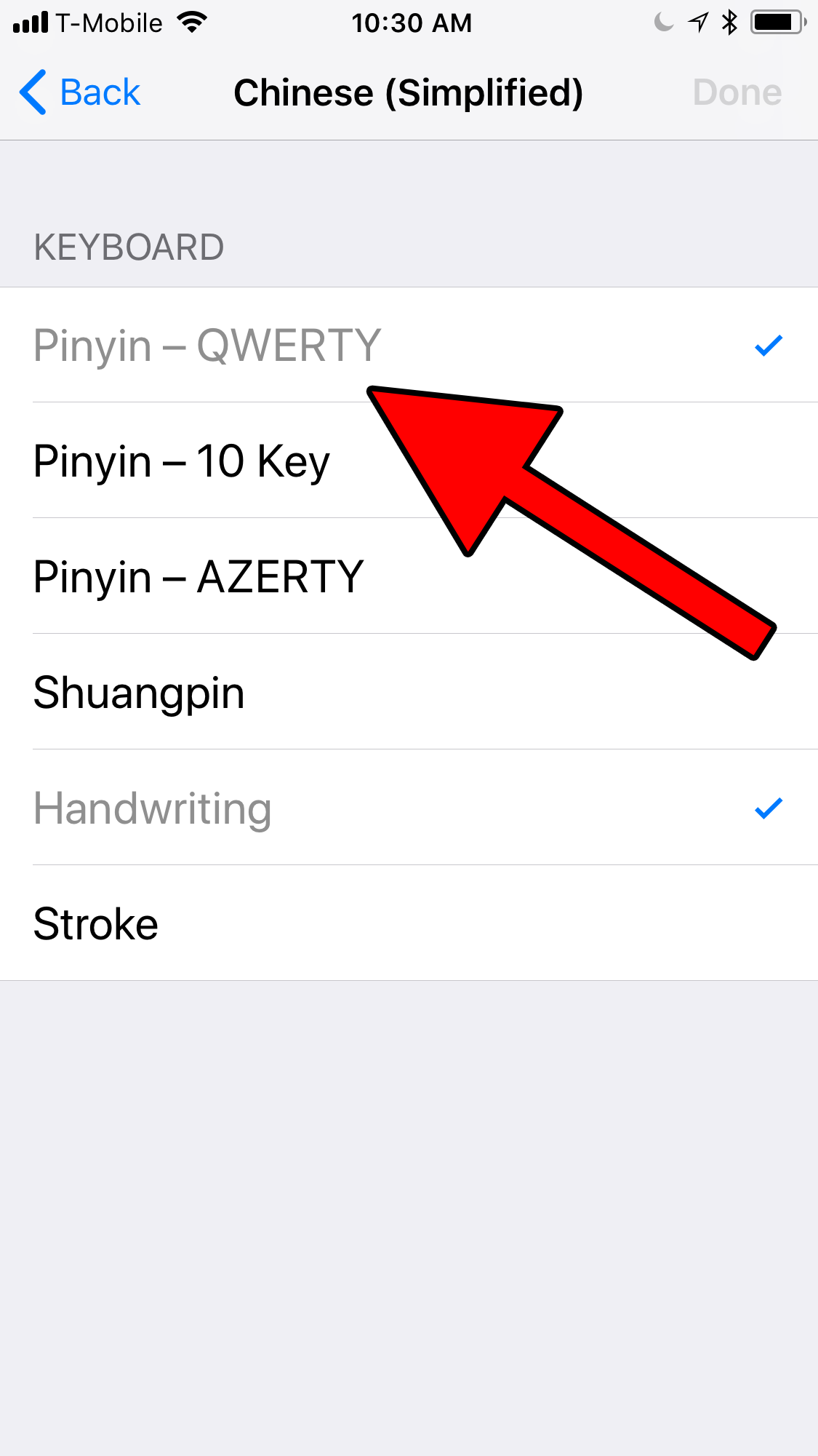 STEP 7: Select the keyboard layout you prefer. You can switch to the Chinese input anytime you bring up the keyboard to type by clicking the