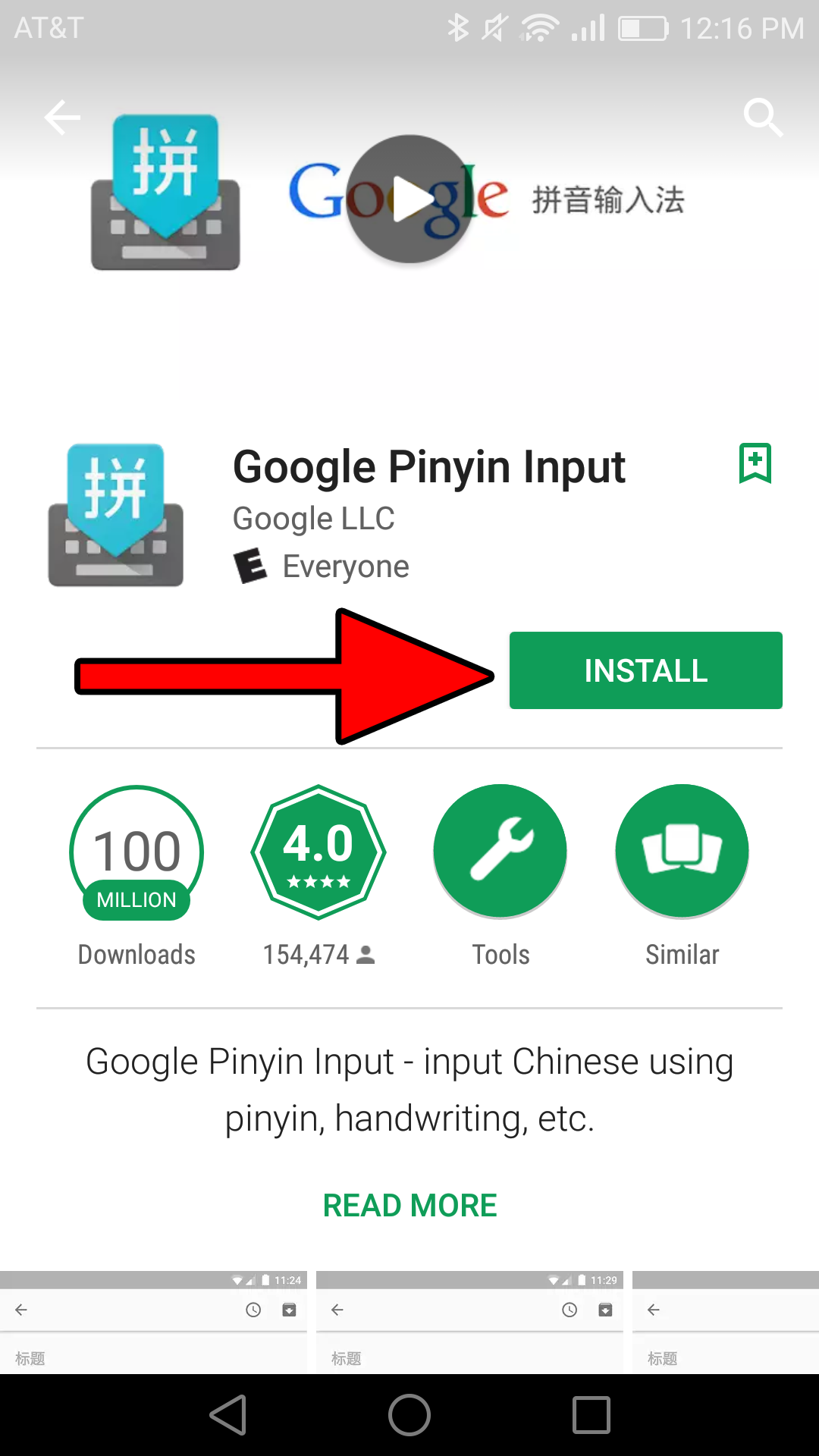 STEP 1: Open the Google Play store and search for "Google Pinyin App", then click to install: