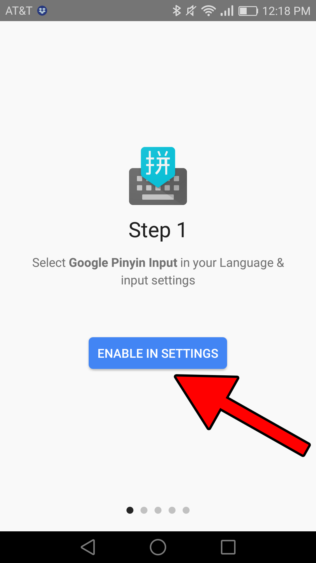 STEP 2: Open the Google Pinyin Input app and click the button to "Enable" the input method: