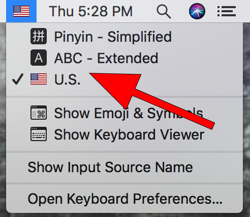 The "ABC - Extended" keyboard is the input method you'll need to select when you want to type pinyin with tone marks. On older Mac operating systems, this may also be called the "U.S. Extended" keyboard.