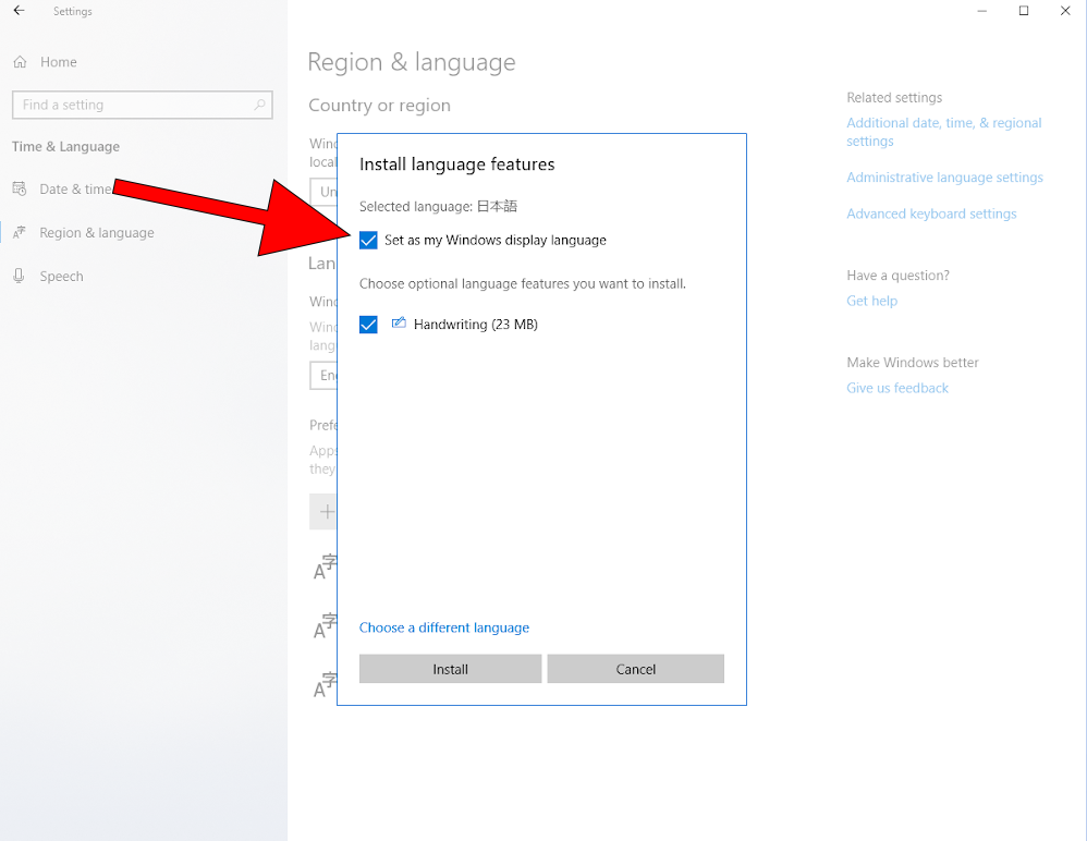 6. Uncheck the box that says, “Set as my Windows display language”. *THIS STEP IS VERY IMPORTANT! You don't want to change your display language to Japanese: