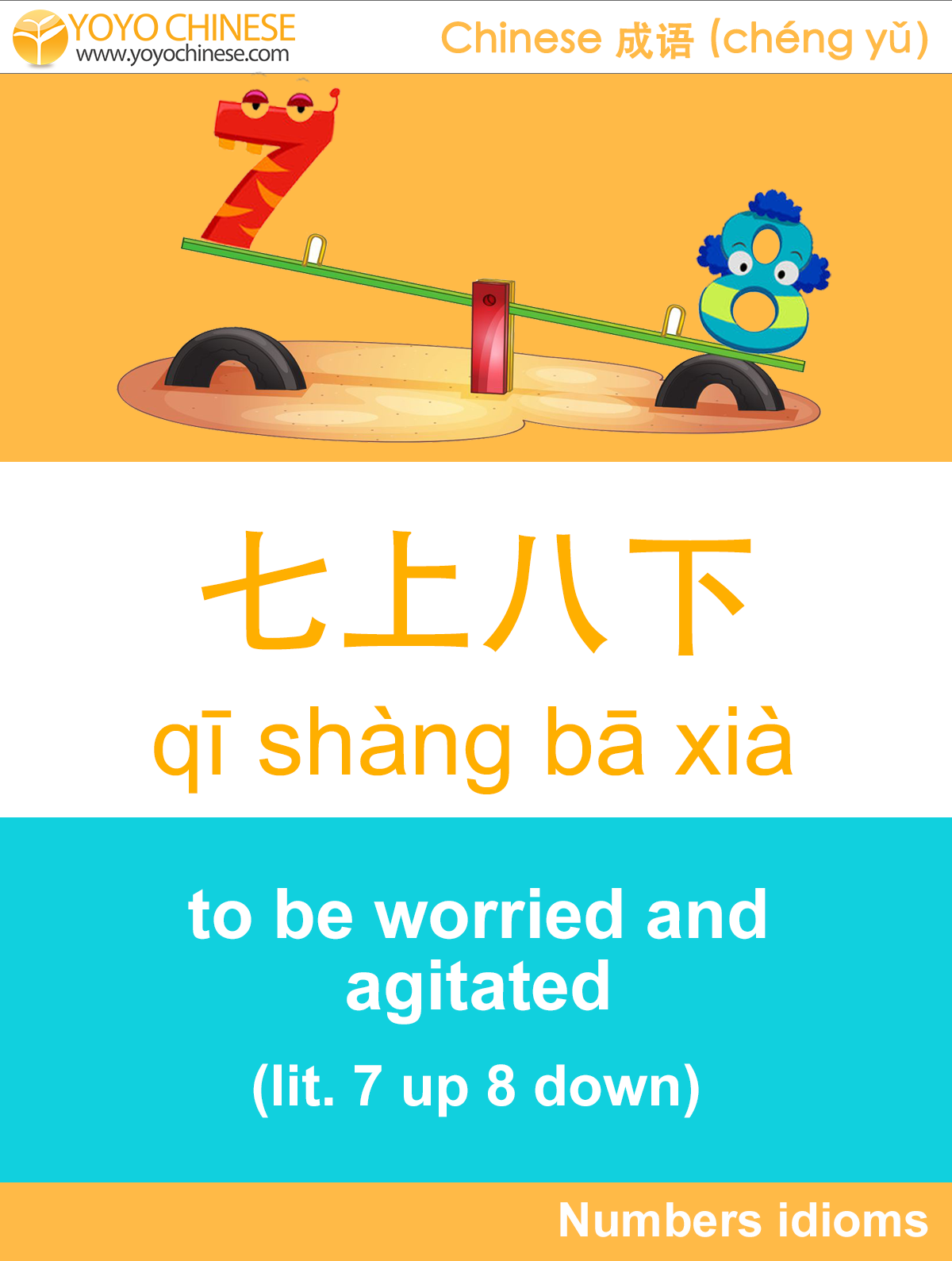 This idiom is a really fantastic way to say you are feeling worried or agitated. "七上八下 (qī shàng bā xià)"